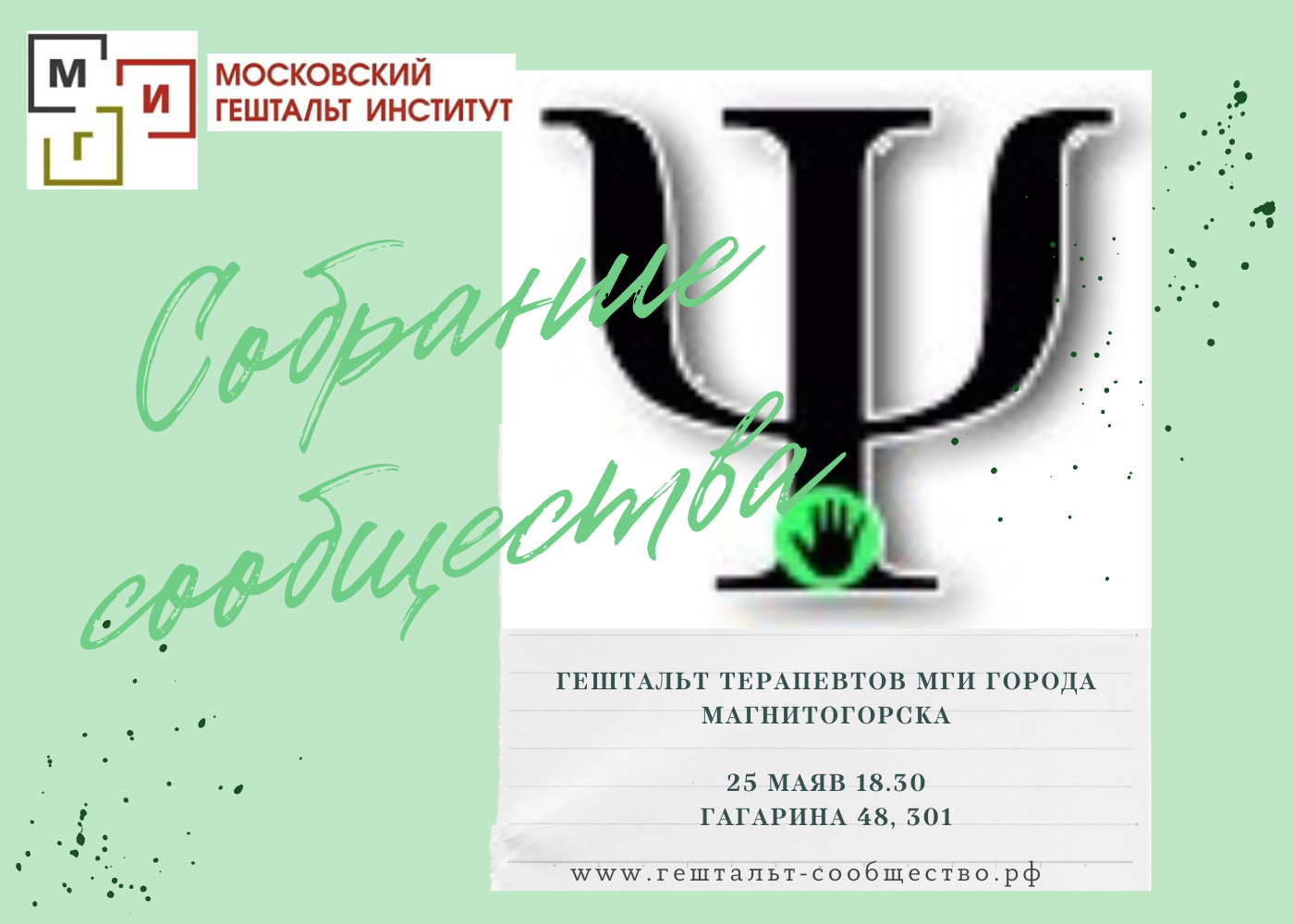 25 мая 2023 года в 18:30 состоится собрание сообщества Гештальт терапевтов МГИ города Магнитогорска.