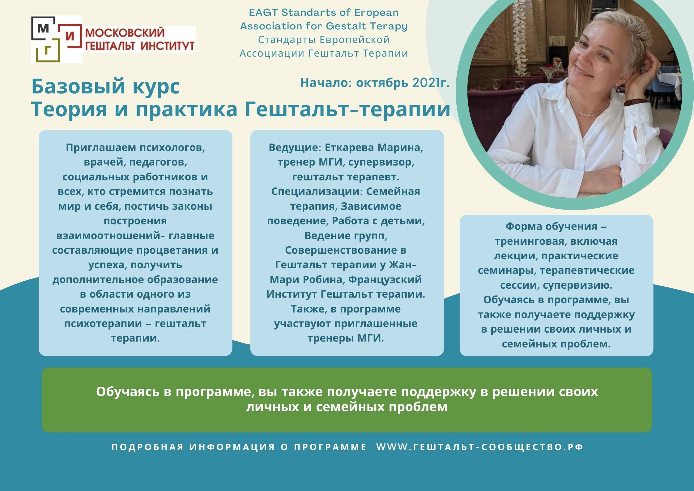 Обучение Гештальт-терапии это увлекательное путешествие в мир взаимоотношений — с другими людьми, самим собой и всем тем, что нас окружает. Мы уверены, что данное путешествие будет для вас новым и необычным — таким, каких вы ещё не совершали.