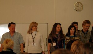Ко второму дню аудитория для общего сбора превратилась в уютный круг, где каждый стал виден друг для друга. Участники, впервые познакомившиеся здесь, говорили о своих чувствах, открытиях, безоценочном отношении. Сложилась атмосфера доверия и принятия, в завершении звучали благодарные слова терапевтам за их открытые сердца, профессионализм, теплоту и желание открывать бесценный мир каждого. Мы стали чуточку ближе к себе и друг другу.